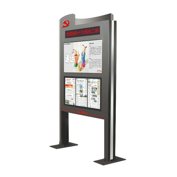電子閱報欄,又稱戶外電子報刊欄、戶外智能電子閱報欄,顧名思義,是將傳統(tǒng)閱報欄上的紙質(zhì)展示信息電子化、智能化之后的新產(chǎn)物。自問世以來,電子閱報欄以更直觀、更快速、更飽滿的傳播效果,廣泛應(yīng)用于機關(guān)單位、街道社區(qū),大型企業(yè)、學(xué)校、車站、商業(yè)機構(gòu)、寫字樓及旅游景點。